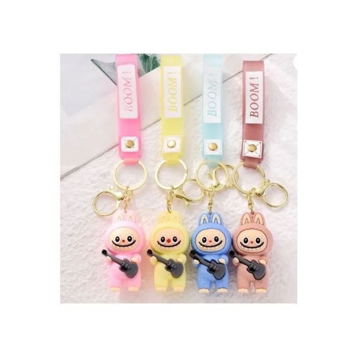 Labubu With Guitar 3D Keychain – Cute Cartoon Music Bag Charm, Kawaii PVC Keyring Pendant